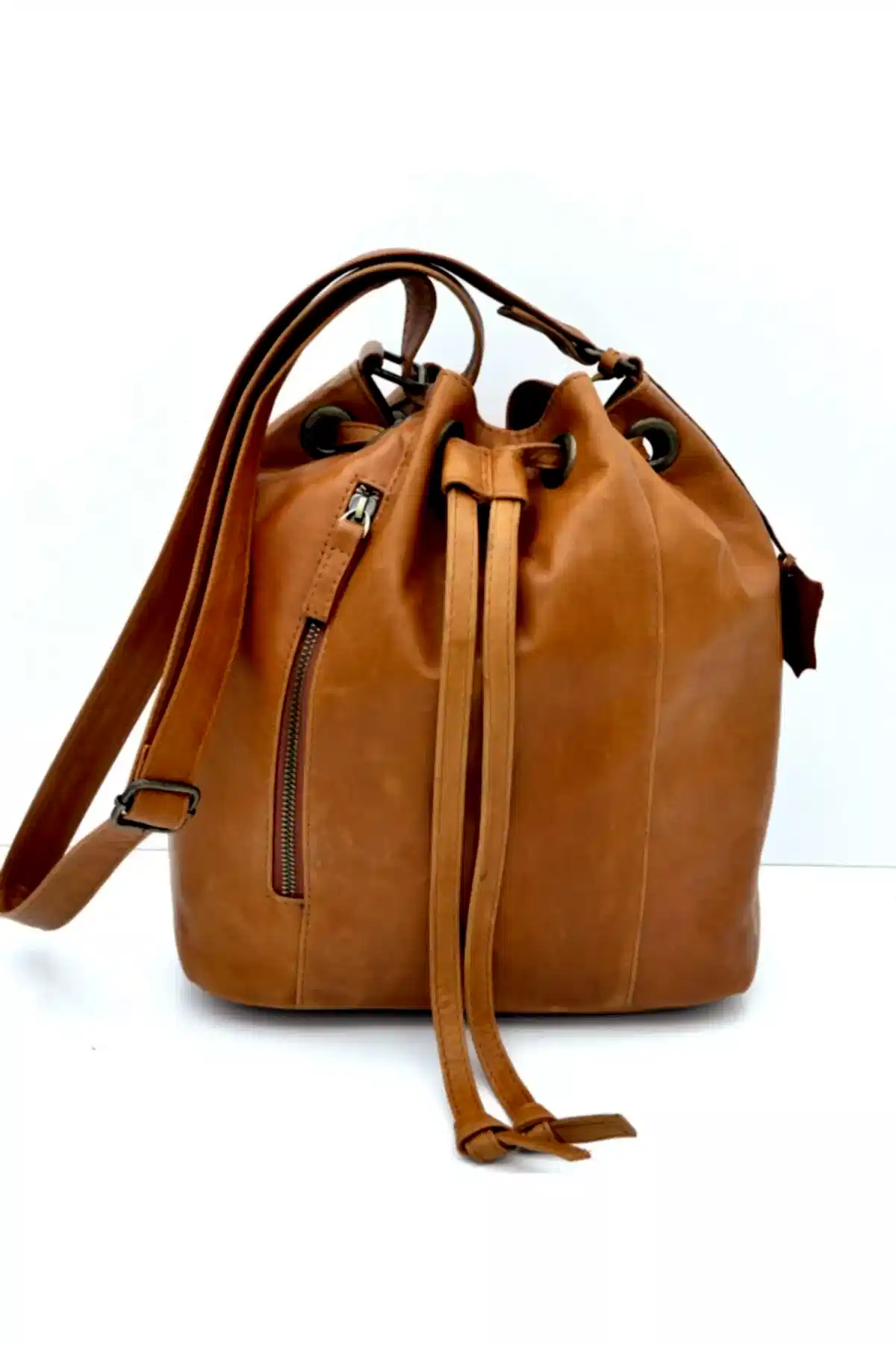 • Küçük aksesuarlar için kullanışlı açık bir deri cep yer almaktadır.